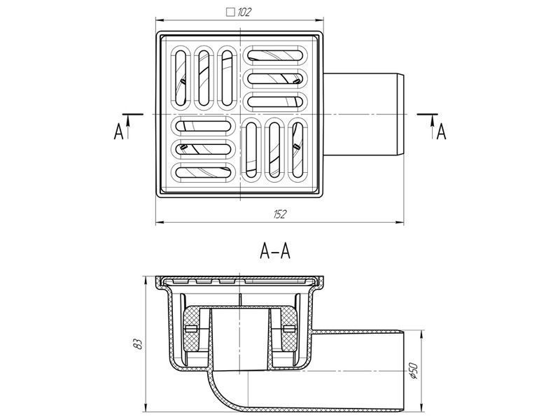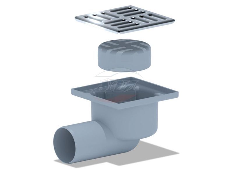 —Трап Ани Пласт горизонтальный нерегулируемый с выпуском 50мм, с нержавеющей решеткой 100х100 сухой (TQ5102)