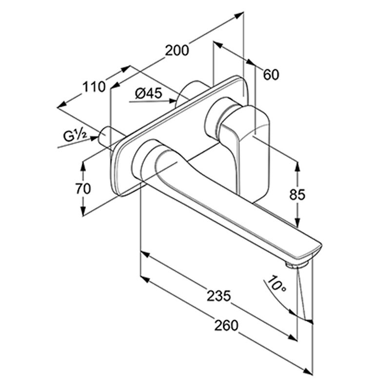 —Смеситель настенный KLUDI AMEO для умывальника, внешняя монтажная часть, длина излива 235 мм, хром (412450575)