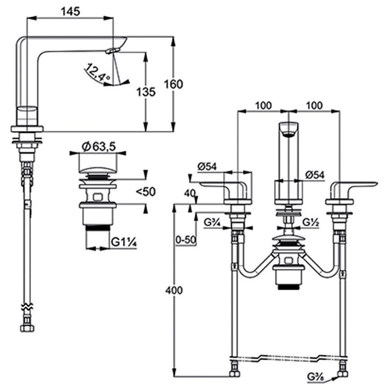 —Смеситель для раковины Kludi Ameo двухвентильный, с донным клапаном, на 3 отверстия, хром (413930575)