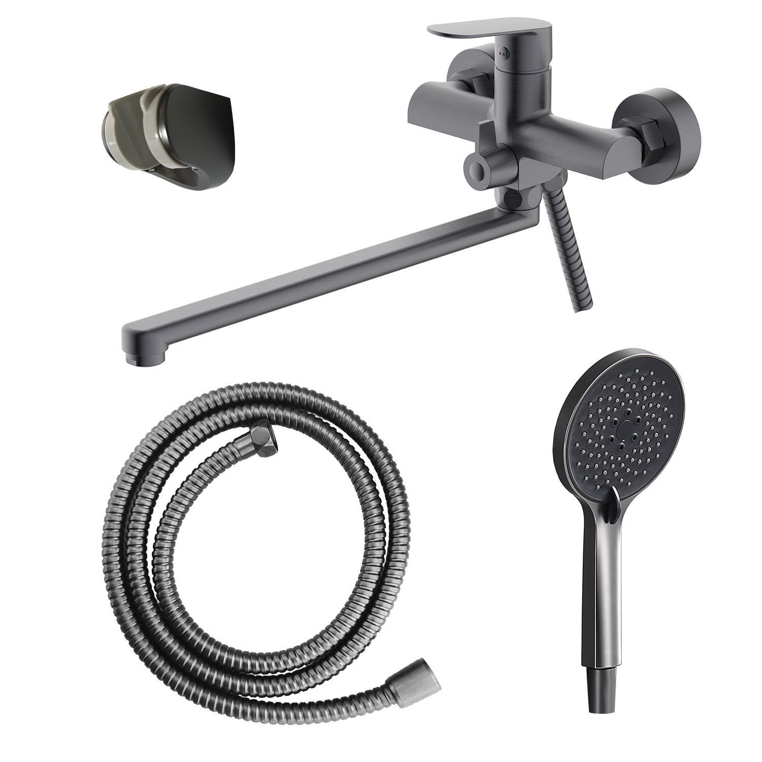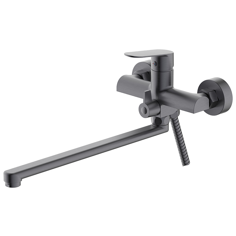 —Смеситель для ванны Azario Alanti керамический картридж, длинный излив, с ручным душем, шланг 150 см, графит (AZ-K1732GR)