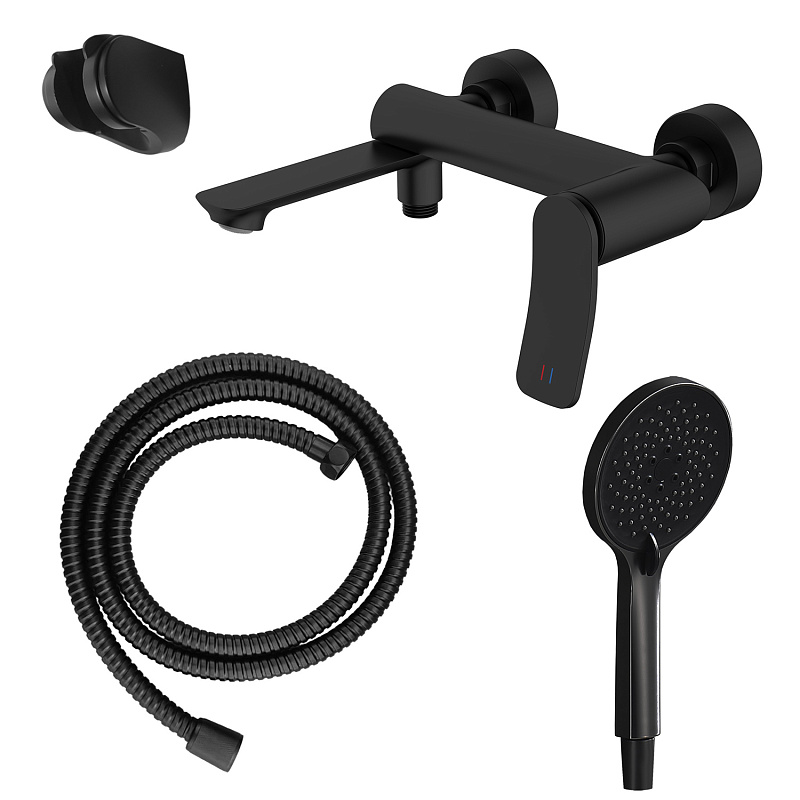 —Смеситель для ванны Azario Escaro с ручным душем, керамический картридж, шланг 150 см, черный матовый (AZ-K3074B)