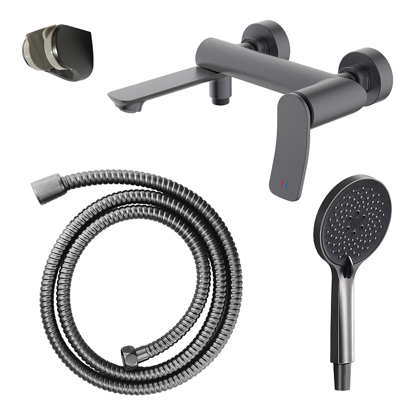 —Смеситель для ванны Azario Escaro с ручным душем, керамический картридж, шланг 150 см, графит (AZ-K3074GR)