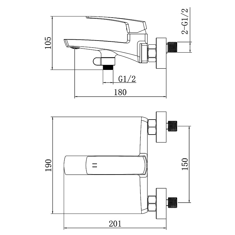 —Смеситель для ванны Azario Conda с ручным душем, керамический картридж, шланг 150 см, черный матовый (AZ-K3011B)