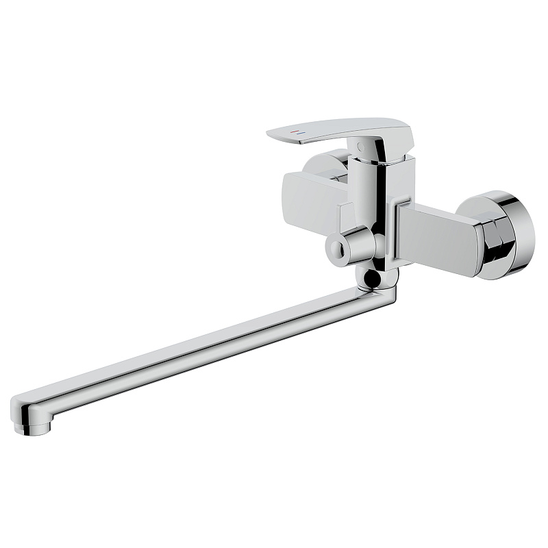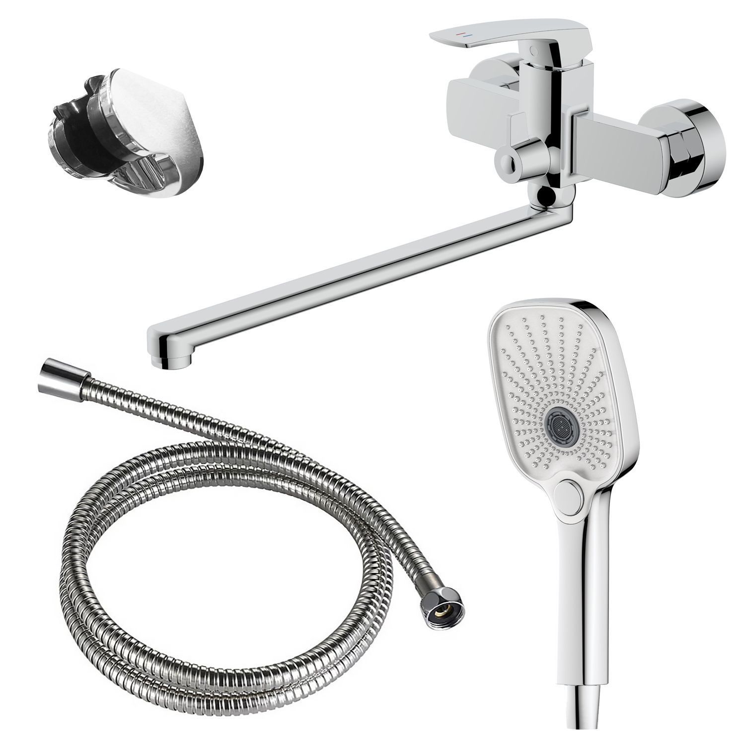—Смеситель для ванны Azario Conda керамический картридж, длинный излив, с ручным душем, шланг 150 см, хром (AZ-K1711)