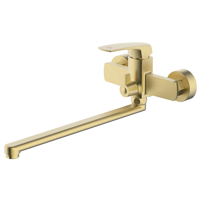 —Смеситель для ванны Azario Conda керамический картридж, длинный излив, с ручным душем, шланг 150 см, золото матовое (AZ-K1711MG)