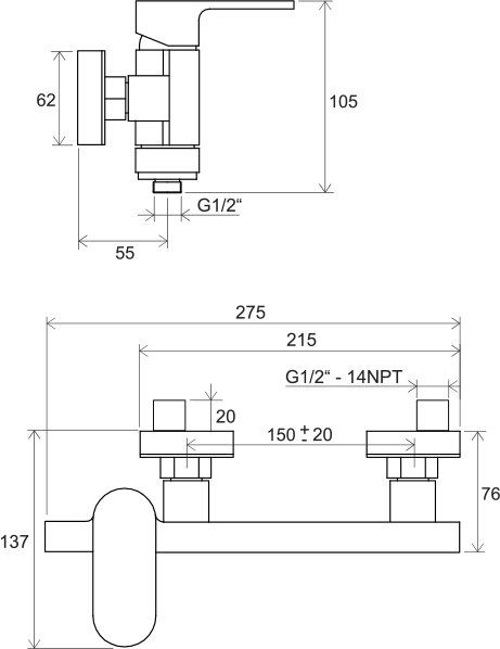 —Смеситель для душа Ravak Chrome CR 032.00/150, 150 мм, однорычажный, хром (X070043)