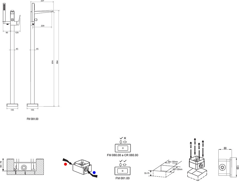 - подходит: к отдельно стоящим ваннам