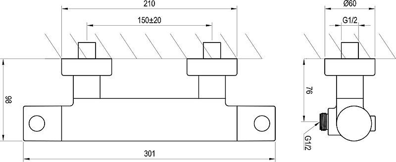 Смеситель для душа Ravak Puri PU 033.00/150 X070116 с термостатом.