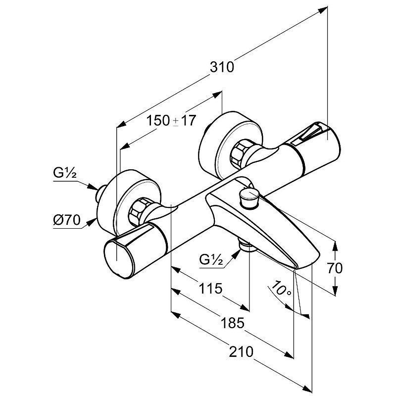 Отвод для душа: G 1/2.