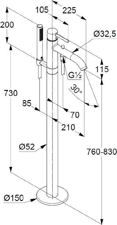 Имеет встроенный девиатор, автоматически переключающий поток с душа на излив при закрытии воды
