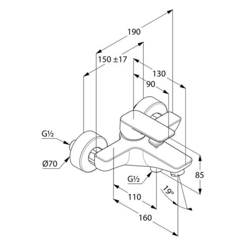 —Смеситель для ванны и душа KLUDI PURE&STYLE однорычажный, черный матовый (406813975)