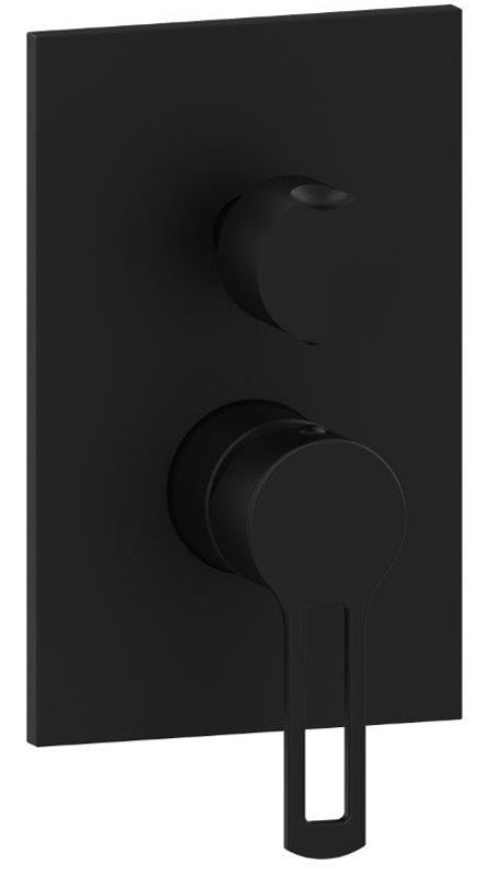 Смеситель встраиваемый для душа на 2 выхода с накладкой нерж сталь 120х190мм.девиатор-картридж, 2 положения+1 комбо, Черный матовый