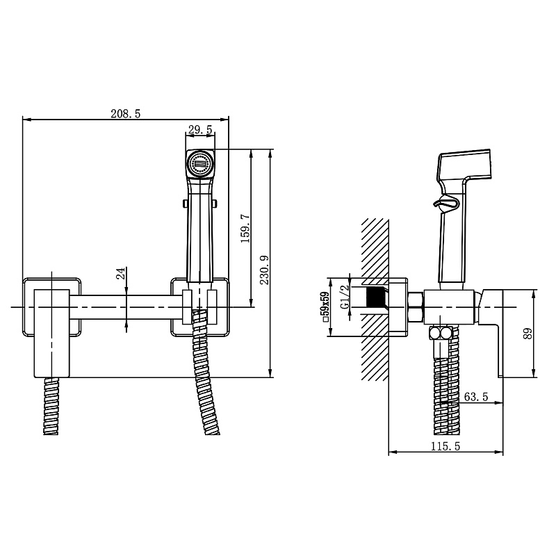 —Гигиенический душ Azario Seyne со смесителем, керамический картридж, шланг 150 см, золото матовое (AZ-KFX05MG)