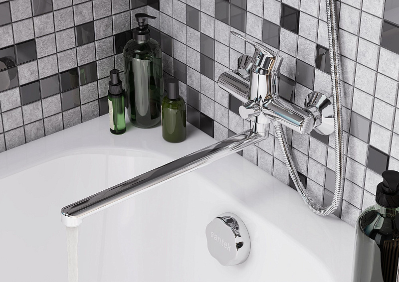 Santek Марион Смеситель однорычажный для ванны-душа с длинный поворотным изливом, хром