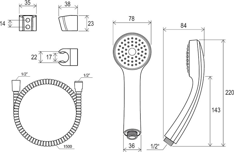 - размеры: шланг 150 см, лейка с функцией Rain, диаметр 68 мм