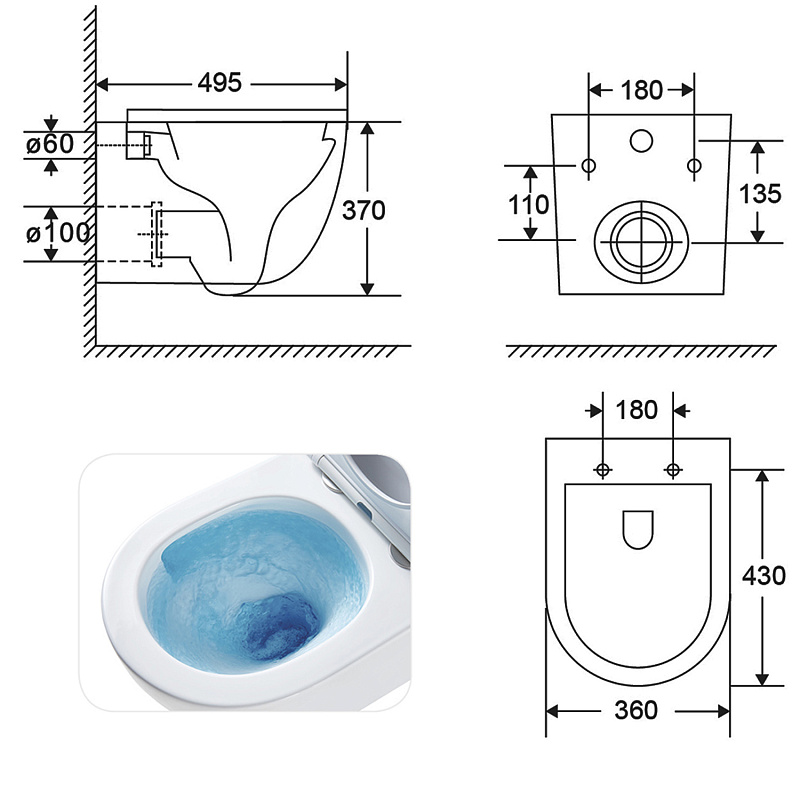 •    Габариты 495x360x370 мм позволяют установить унитаз даже в небольших ванных комнатах, экономя пространство.