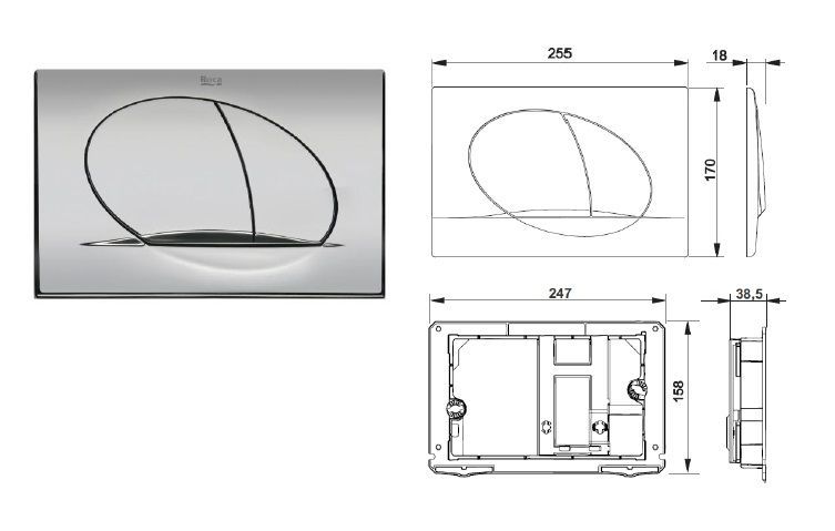 * двухрежимную глянцевую хромированную кнопку смыва с логотипом Roca