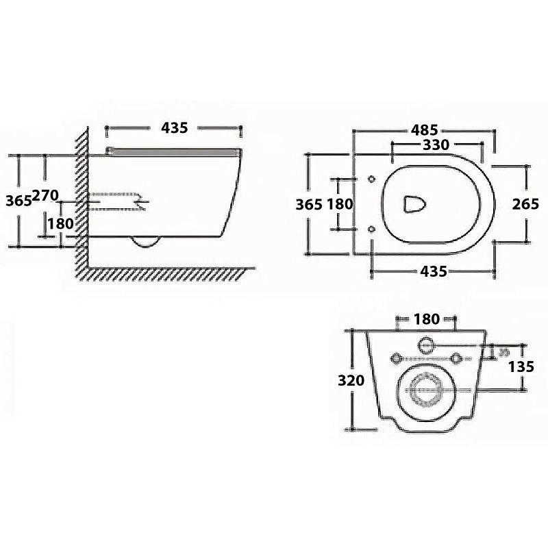 •    Габариты унитаза (365х485х365 мм) делают его идеальным выбором даже для небольших ванных комнат, не жертвуя при этом пространством и комфортом.