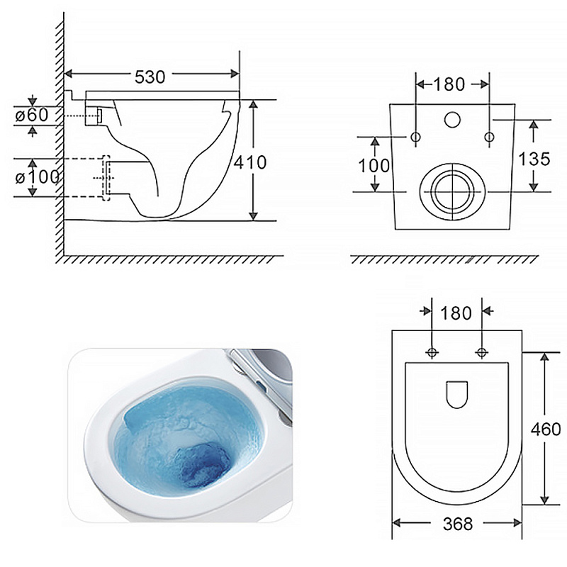 •    Подвесная конструкция: Подвесной монтаж создает ощущение легкости и простора в ванной комнате, а также значительно упрощает процесс уборки пола.