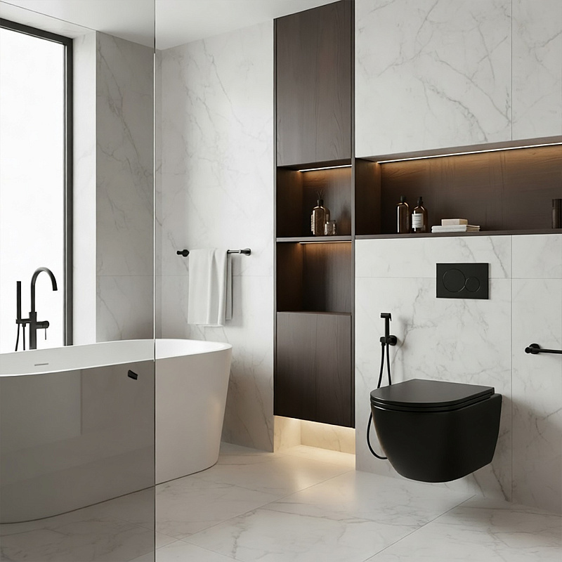 Azario Ines Black — идеальный выбор для тех, кто ценит современный дизайн, комфорт и надежность в сантехнических изделиях.