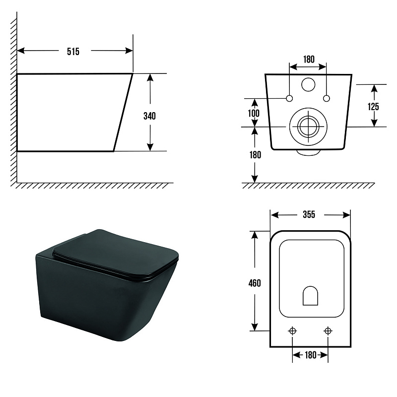 —Унитаз подвесной Azario Дейзи Блэк 355х515х340 безободковый, система смыва "скрытое Торнадо", с быстросъемным сиденьем "Микролифт", черный матовый (AZ-W05-SB)