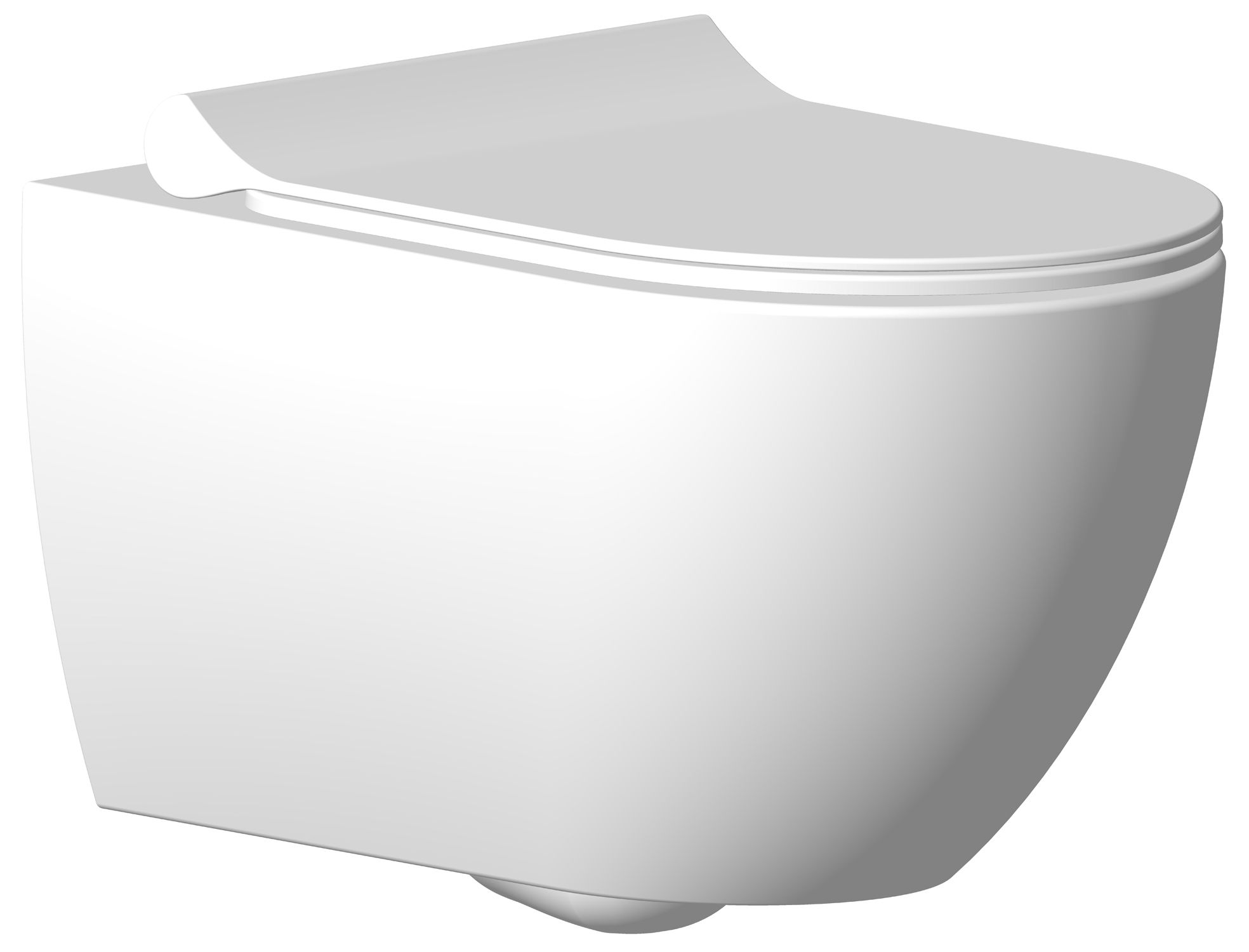 —Унитаз подвесной Seramiksan Hill 360х520х350 безободковый, с тонким сиденьем микролифт, белый (A031161H+A030011)