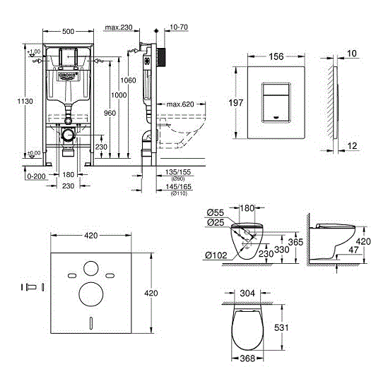 Комплект подвесного унитаза с инсталляцией Grohe Solido Compact 39586000 с сиденьем Soft Close, клавишей смыва и шумоизоляцией.