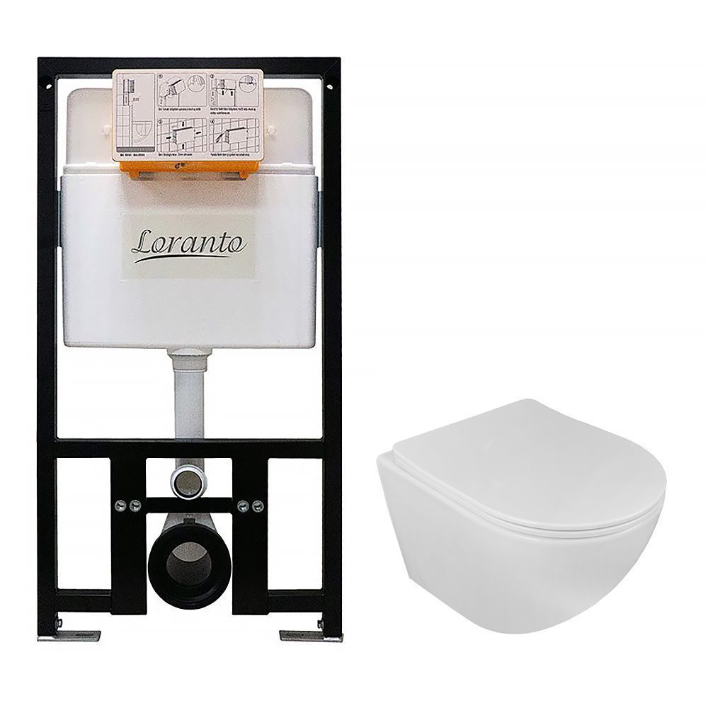 —Сет: Инсталляция LORANTO Prestige + подвесной унитаз Azario ESTER 485х360х320 безободковый, система смыва Tornado, в комплекте с быстросъемным сиденьем микролифт (БЕЗ КНОПКИ) (4551+87265)