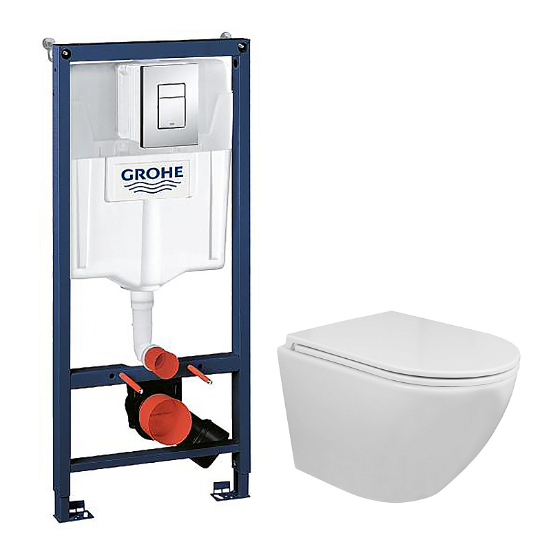 Сет 3 в 1 инсталляция Grohe Rapid SL с клавишей смыва + подвесной унитаз Azario Grado c быстросъемным сиденьем микролифт (38772001+AZ-0046N)