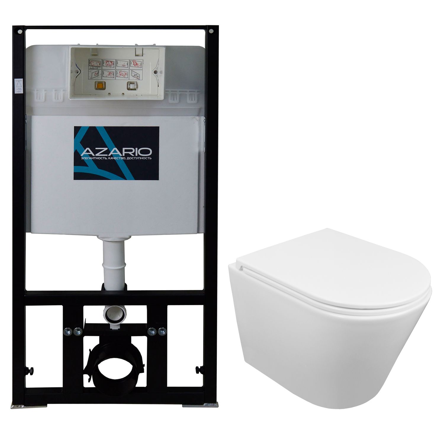 —Сет: Инсталляция Azario для подвесного унитаза 3/6л. + унитаз Azario Teramo безободковый, слив "Скрытое Торнадо", с сиденьем микролифт (AZ-8010-1000+AZ-0053-UQ3)