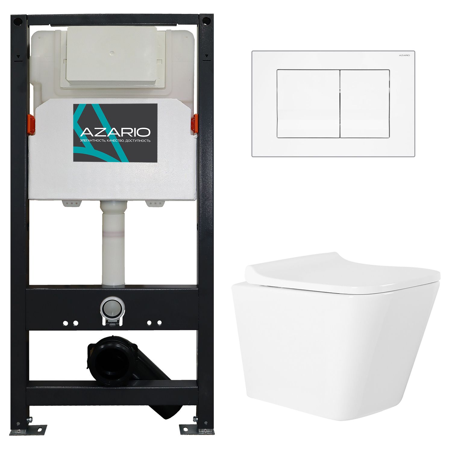 —Сет: Инсталляция для подвесного унитаза AZARIO NEW 3/6л + Унитаз подвесной Azario Teramo, с сиденьем микролифт + Клавиша смыва, глянцево-белая (AZ-501A+AZ-0052+AZ-001.01)