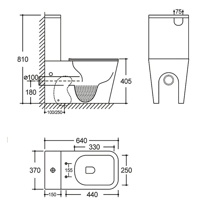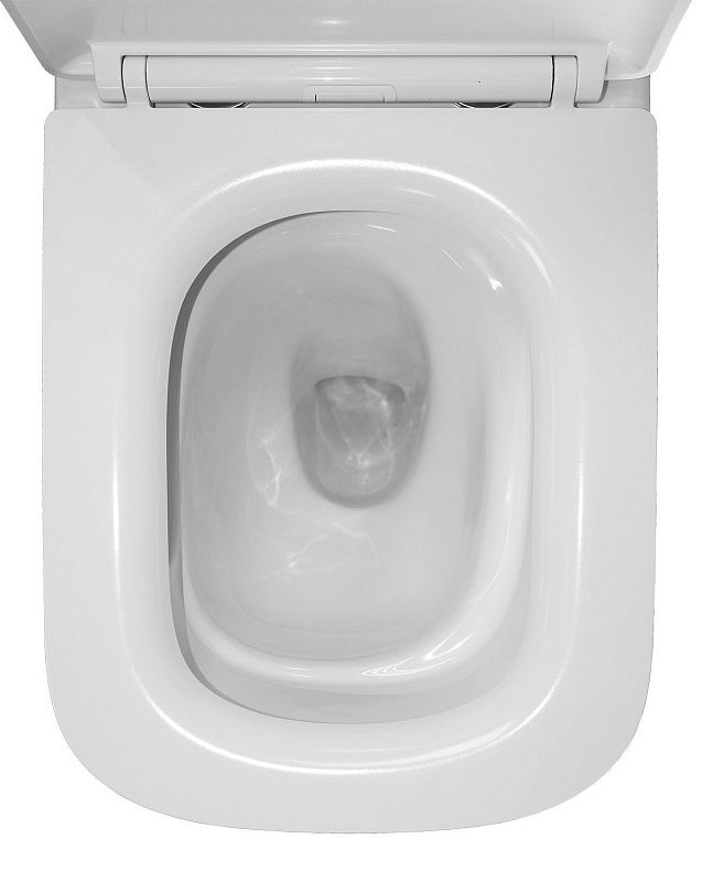 • Безободковая конструкция: Отсутствие ободка обеспечивает максимальную гигиеничность и легкость в уборке, предотвращая скопление бактерий и грязи.