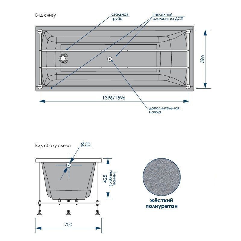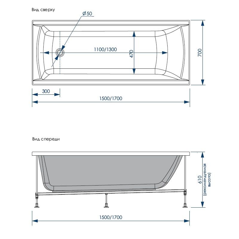 Ванна акриловая Loranto MILTON 1700х700, белая