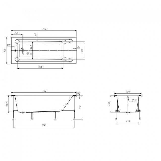 Ванна акриловая Roca Leon 1700x700 прямоугольная белый (7.2486.5.800.0)