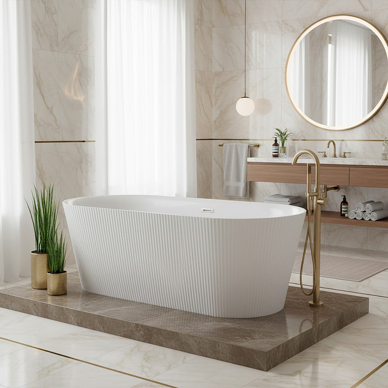 Ванна акриловая Azario ROUSE  — стильное и функциональное решение для вашей ванной комнаты. Отдельностоящая овальная ванна выполнена из высококачественного акрила, обеспечивающего долговечность, теплоизоляцию и комфорт при использовании. Рифленые внешние стенки придают изделию оригинальный современный дизайн.