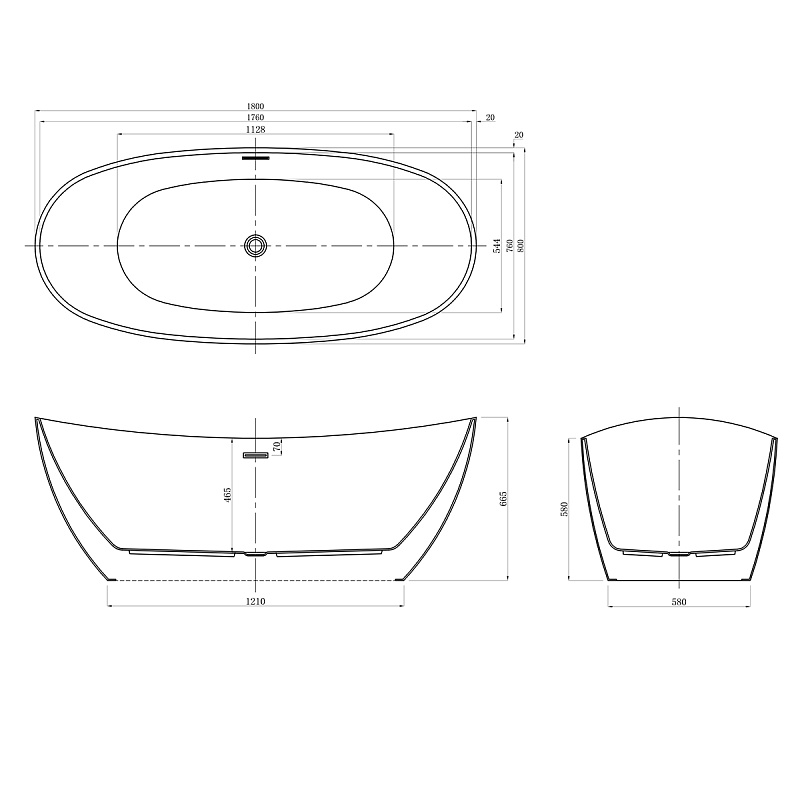 Ванна акриловая, свободностоящая, в комплекте с сифоном и металлической рамой.