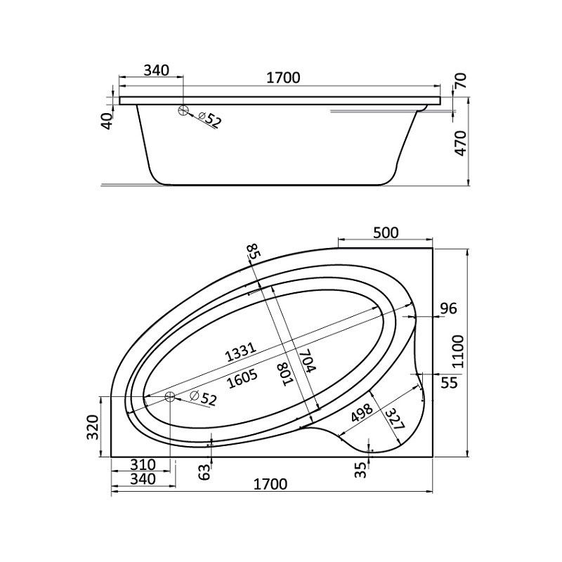 Внешний борт ванны более тонкий и изящный, что делает ванну более просторной и удобной.
