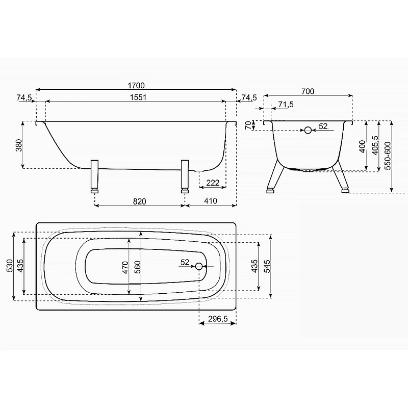 Толщина ванны, мм