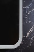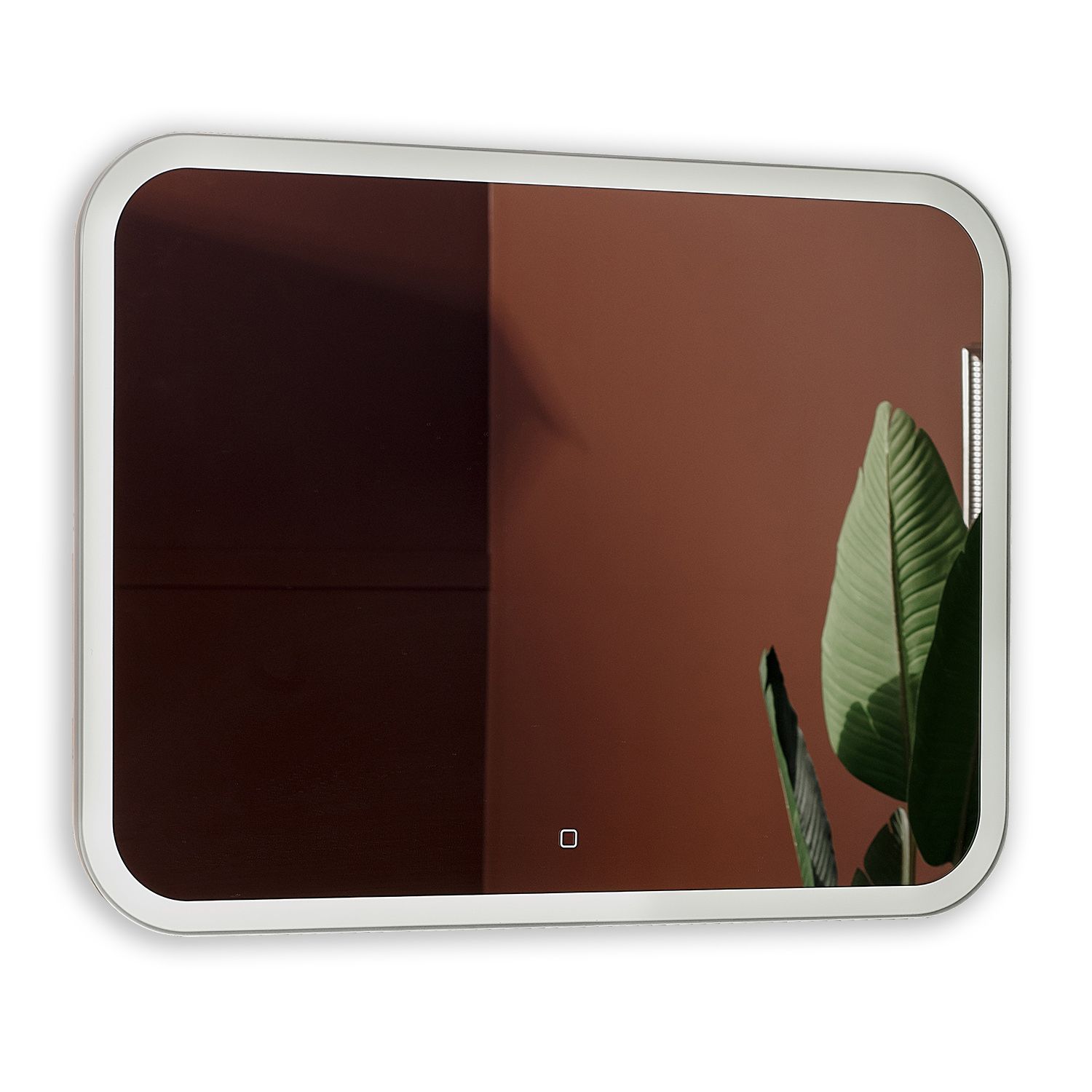 Зеркало оснащено сенсорным выключателем с функцией плавного диммирования с запоминанием последнего значения. Короткое касание светящейся области включает/выключает подсветку, длительное касание меняет яркость свечения.